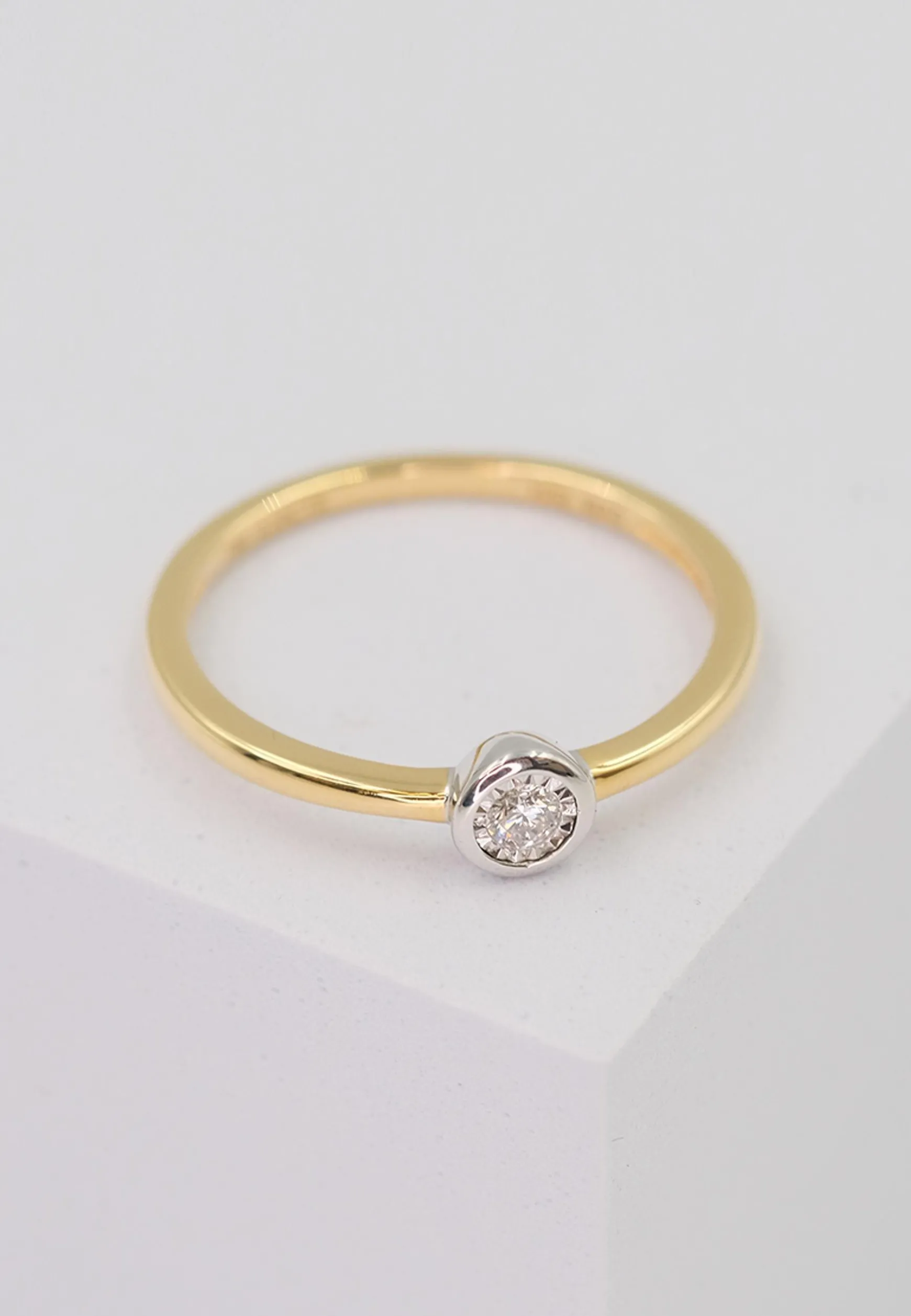 Trauringe vermitteln das Gefühl der Liebe in seiner schönsten Form und Art. Solitär Ring Zargen-Fassung Gelbgold 750, Brillanten 0.05ct. Fassung Weissgold 750, Trumiracle 0.20ct. verbindet Herzen, teilt schöne Erinnerungen und lässt nie vergessen. Jetzt Liebe mit unseren schönen Trauringen besiegeln.