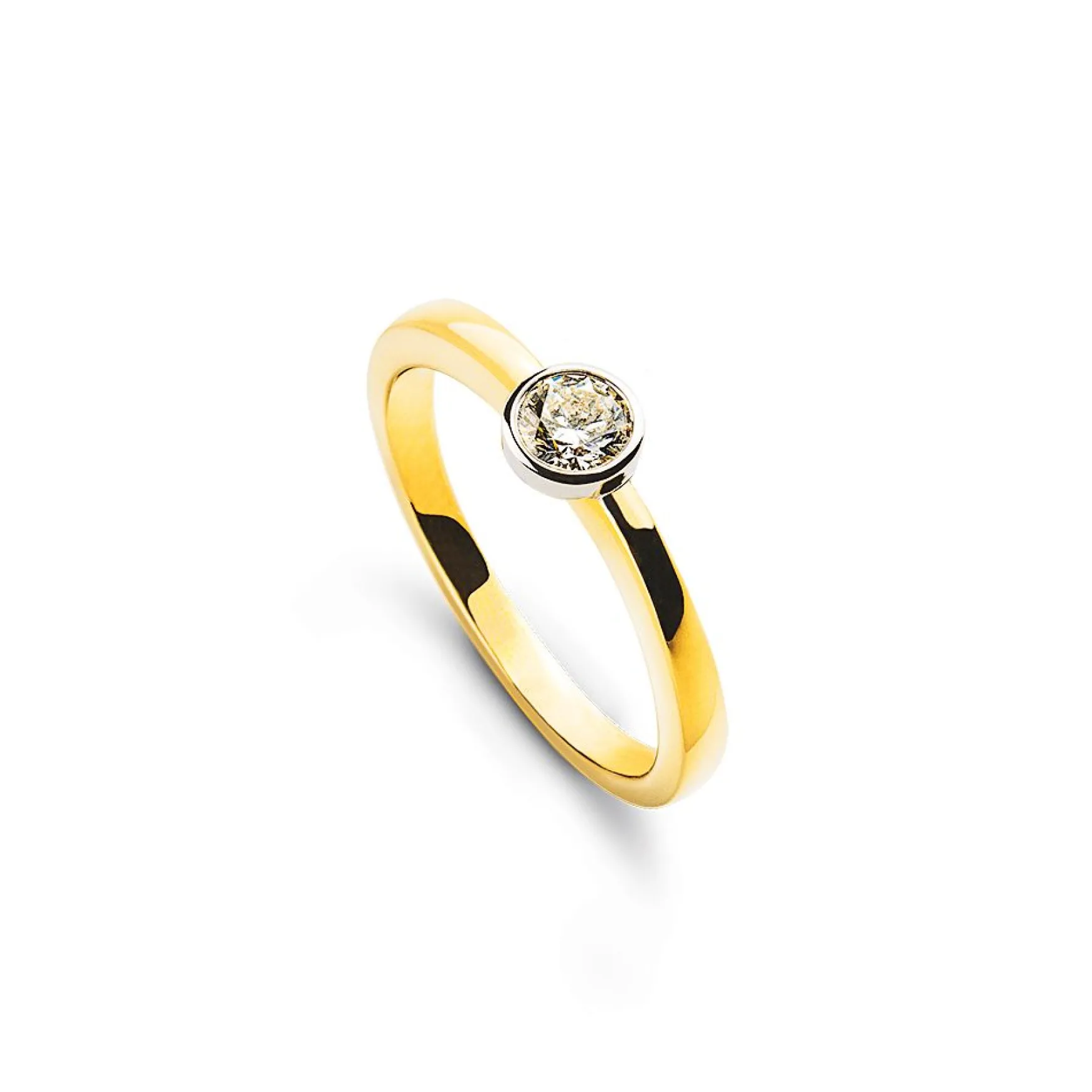 Ein Trauring führt das zusammen, was sich gesucht und gefunden hat. Solitär Ring Zargen-Fassung Gelbgold 750, Brillanten 0.10ct. Fassung Weissgold 750 erfüllt sehnliche Wünsche für eine Gemeinsamkeit voller Liebe. Schöne Trauringe und viele weitere Schmuckstücke bei uns entdecken.
