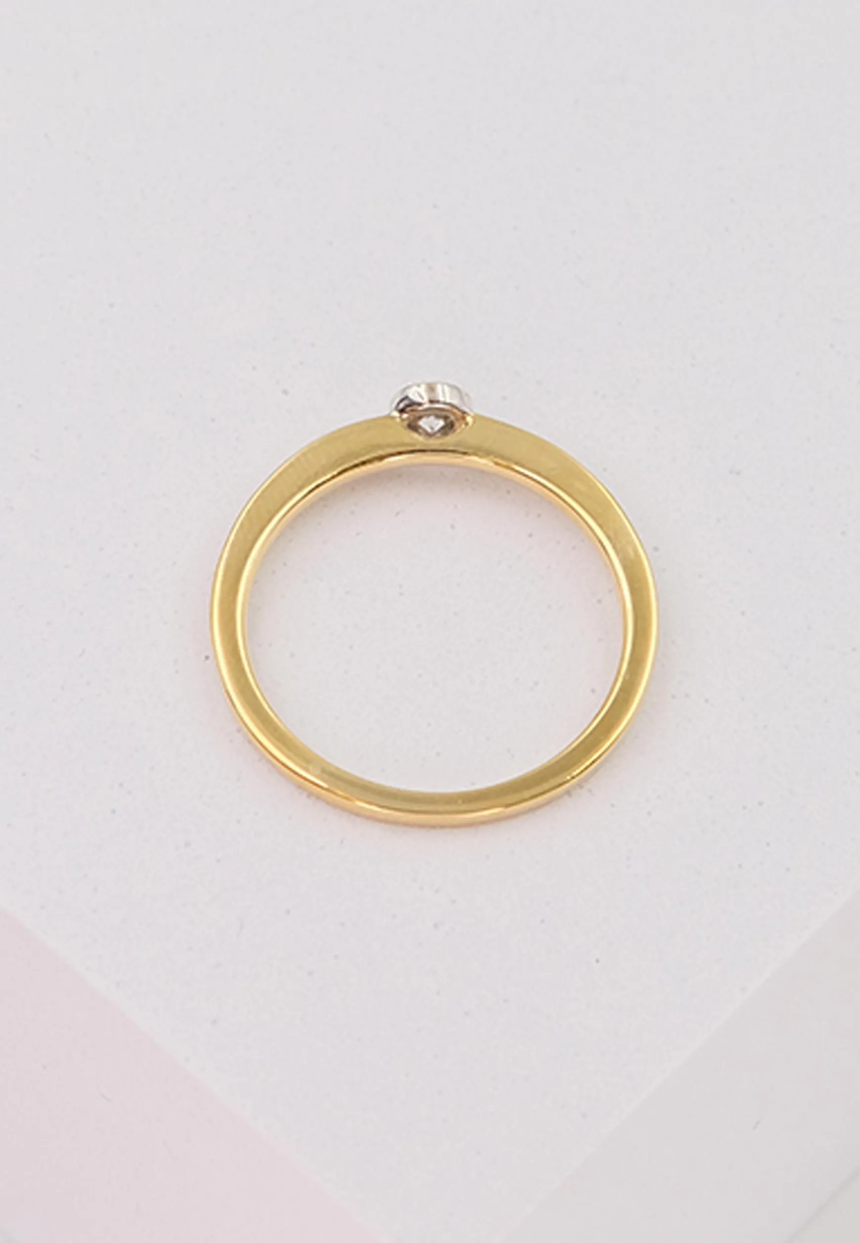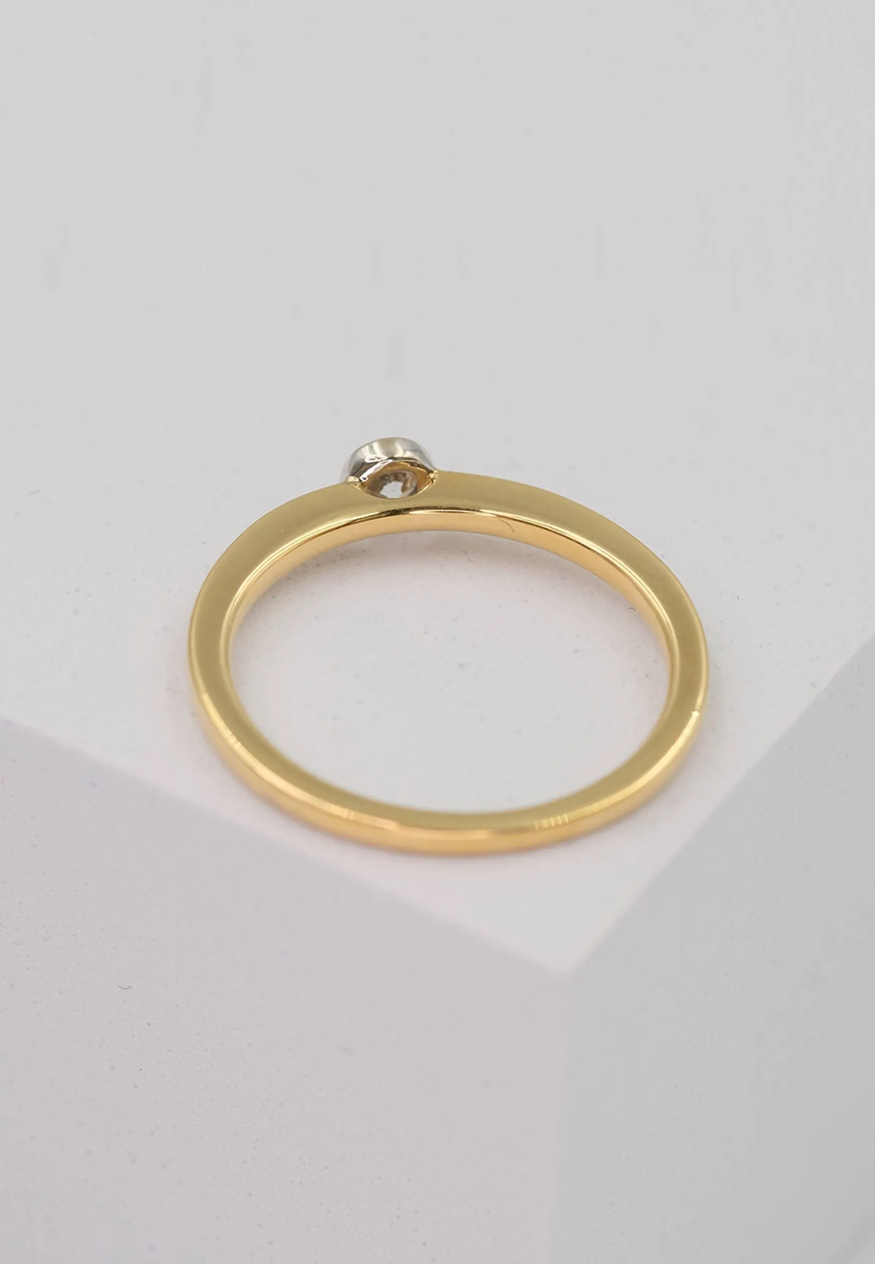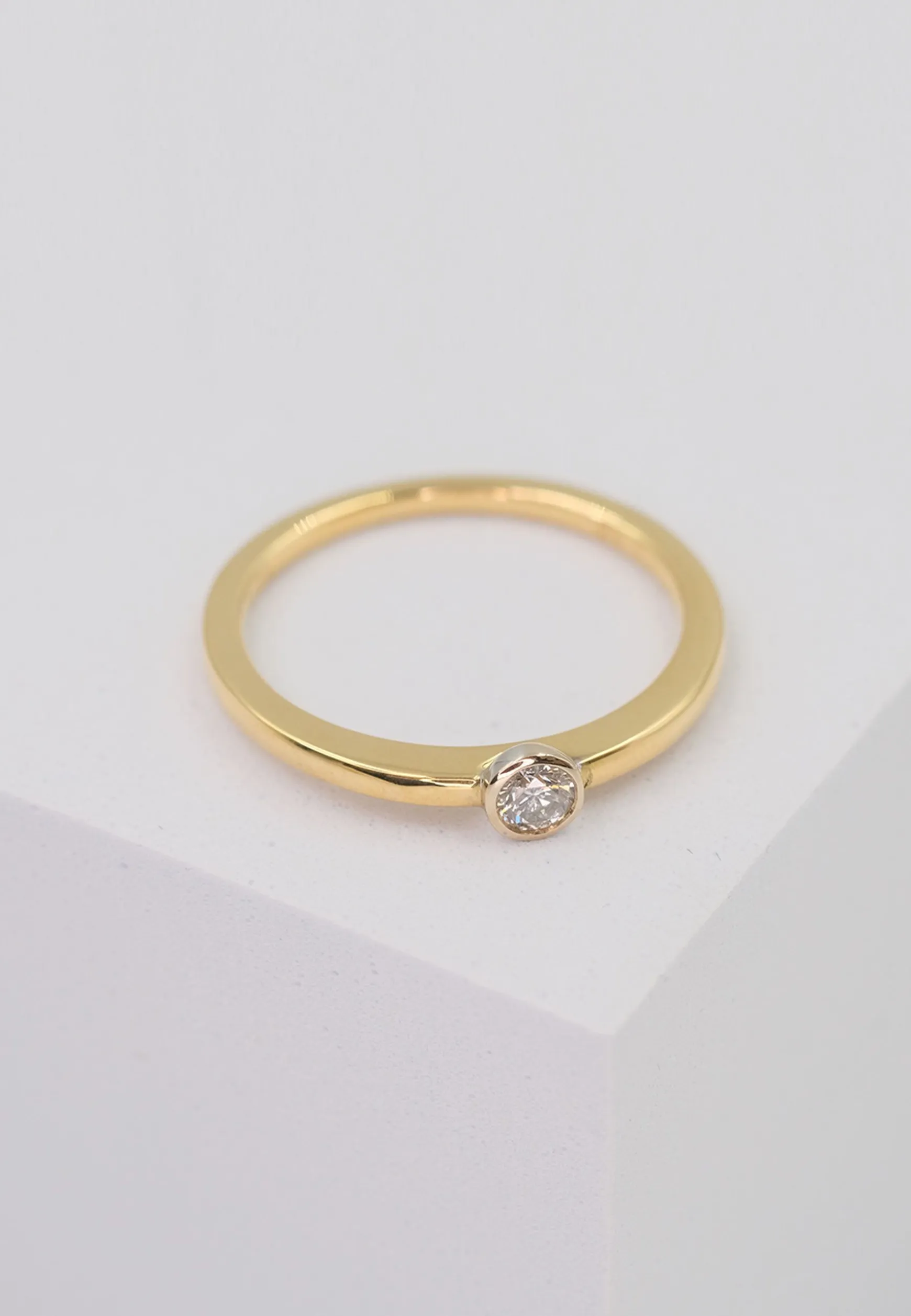 Solitär Ring Zargen-Fassung Gelbgold 750, Brillanten 0.10ct. Fassung Weissgold 750 (52)