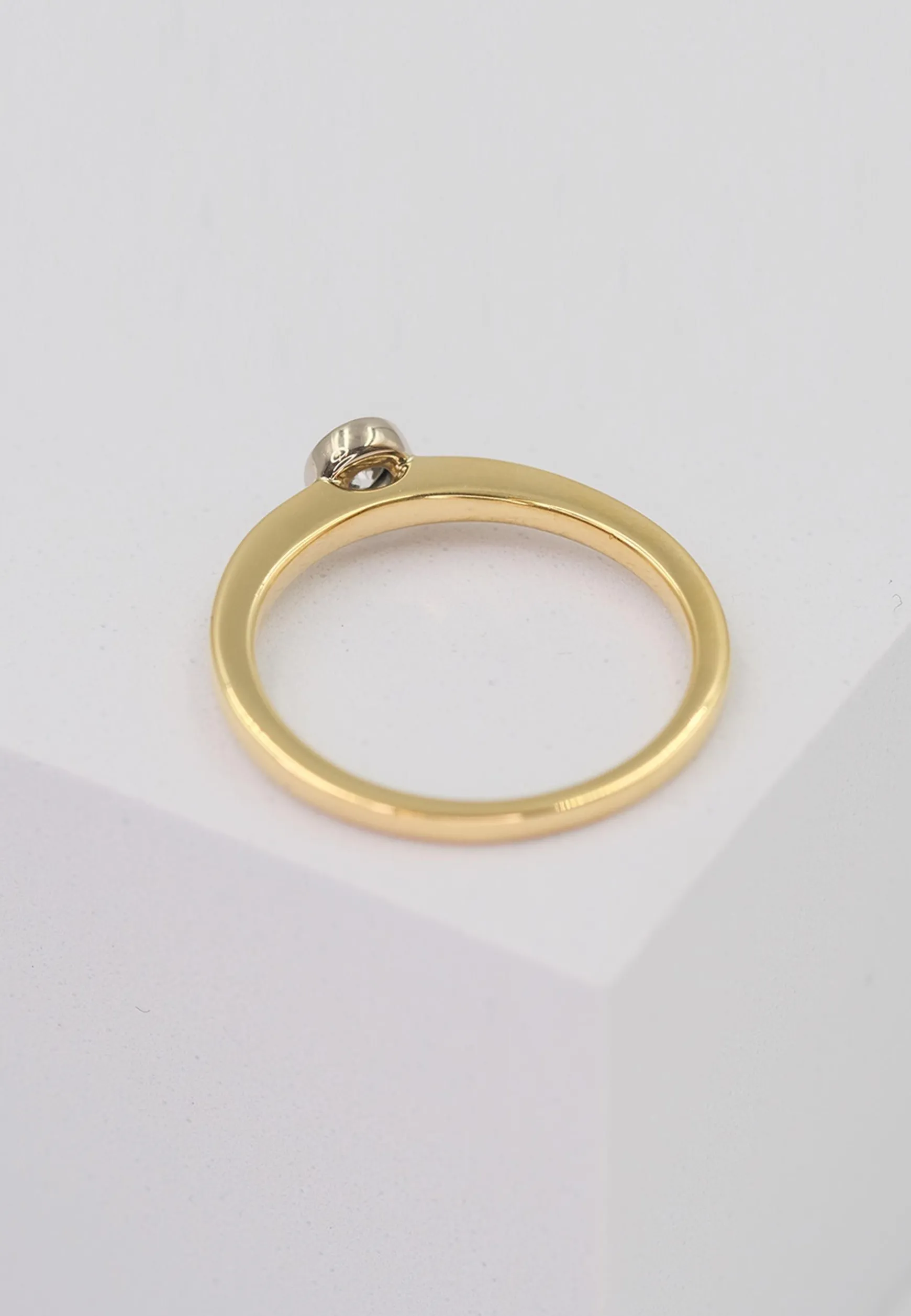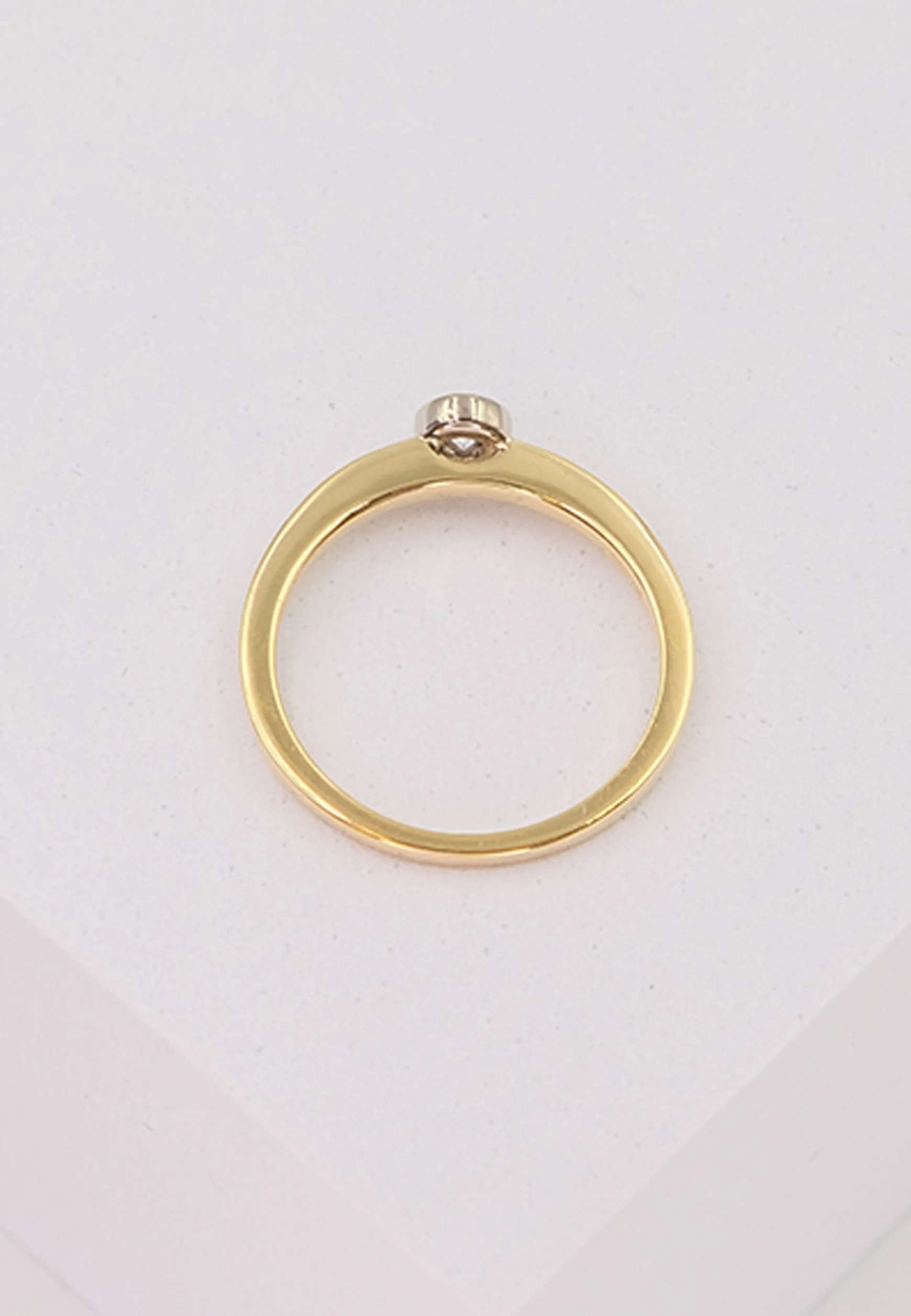 Solitär Ring Zargen-Fassung Gelbgold 750, Brillanten 0.15ct. Fassung Weissgold 750 (56)