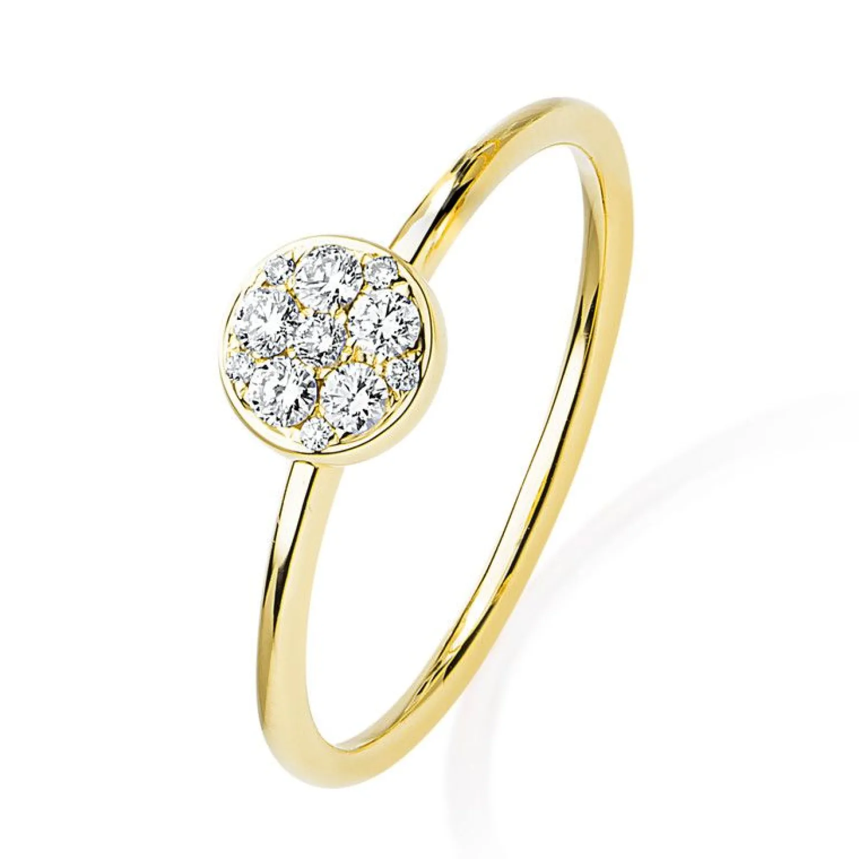 Diamantringe und Diamantschmuck geniessen in vielen Kulturen höchste Wertschätzung. Entdecken Sie jetzt in unserem Schmuck Shop aus unserer Diamantring Kategorien diesen Verlobungsring aus 585/14K Gelbgold mit einer Diamant-Steinfarbe: TW (TOP WEssELTON) Feines Weiss. Diamantschmuck jetzt bei MUAU im Online Schmuck Shop sichern. Allgemeine Produktinformation: Verlobungsring aus 585/14K Gelbgold mit 11 Diamant Steinen und 0.15 Karat. Schliffform: Brillantschliff, Steinreinheit: SI