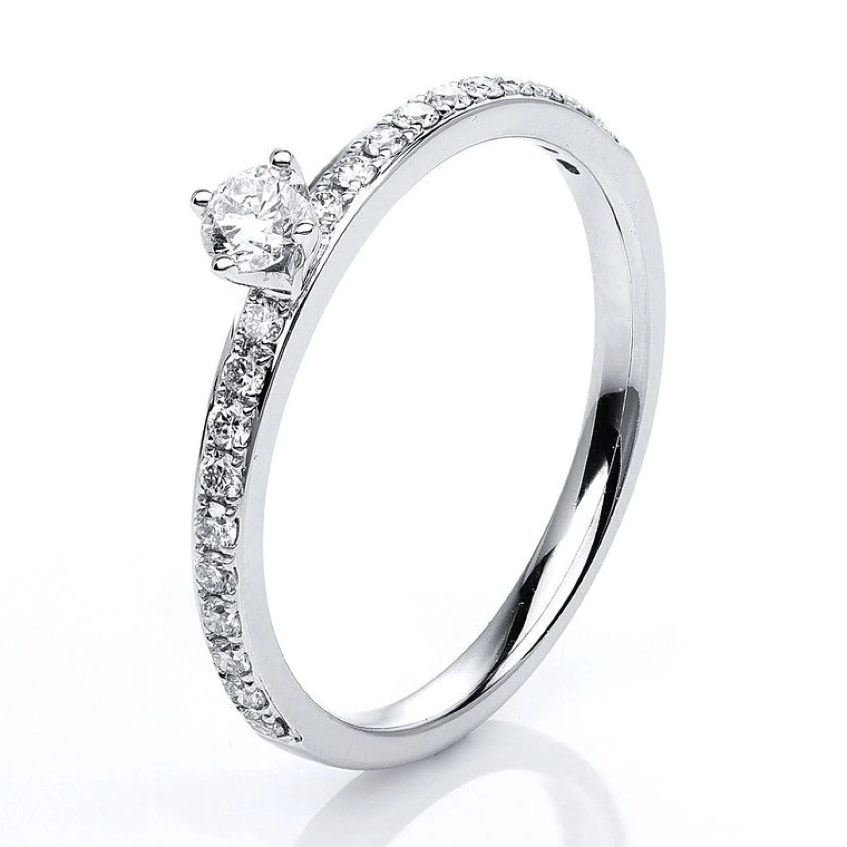 Ein Diamantring erzeugt eine äusserst emotionale und schätzende Bindung zwischen dem Schenkenden und der beschenkten Person. Diamantringe entdecken Sie ganz einfach und bequem in unserem Schmuck Shop und bestellen oder verschenken Schmuck wie diesen Verlobungsring aus 585/14K Weissgold mit einer Diamant-Steinfarbe: TW (TOP WEssELTON) Feines Weiss. Jetzt den Diamantring ganz einfach und bequem online sichern. Allgemeine Produktinformation: Verlobungsring aus 585/14K Weissgold mit 21 Diamant Steinen und 0.35 Karat. Schliffform: Brillantschliff, Steinreinheit: SI