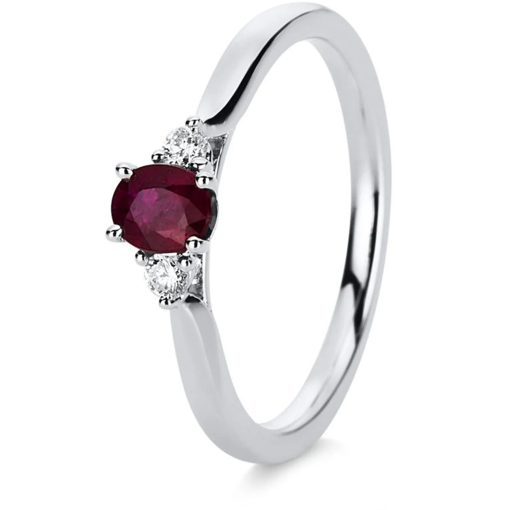 Verlobungsring 750/18K Weissgold Diamant 0.08ct. Rubin 0.33ct.