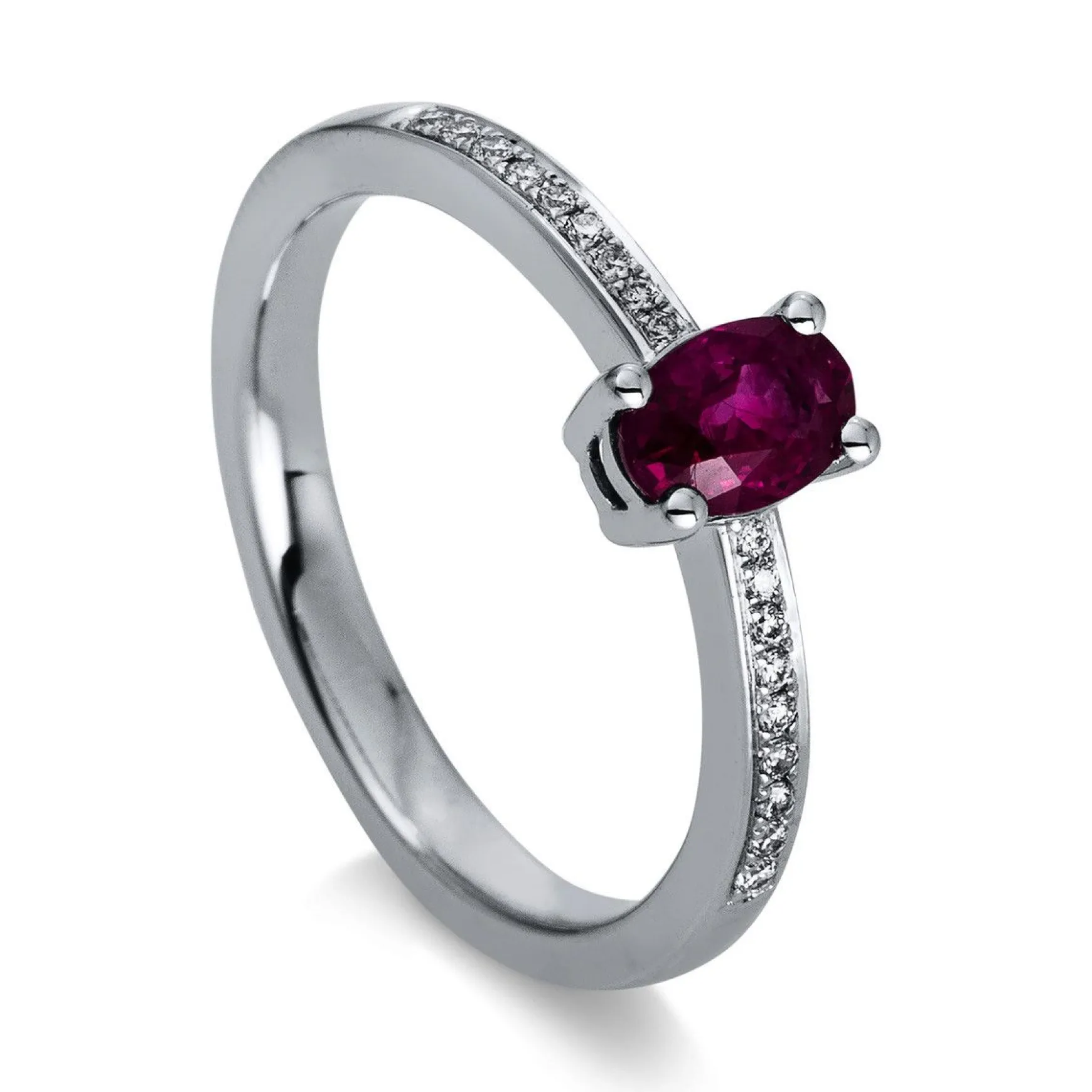 Verlobungsring 750/18K Weissgold Diamant 0.08ct. Rubin 0.67ct.