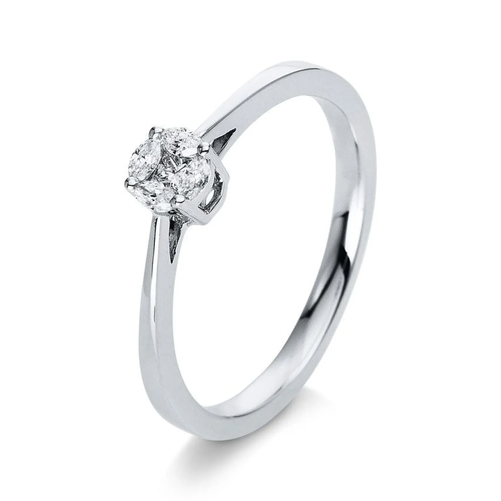 Diamantringe haben in der Schmuck-Welt einen ganz besonderen Status. Unser Schmuck Shop bietet für jeden Geschmack den perfekten Verlobungsring aus 750/18K Weissgold mit einer Diamant-Steinfarbe: TW (TOP WEssELTON) Feines Weiss. Bestellen Sie hier Ihren Diamantring bequem online, unser Spezialisten Team steht Ihnen gerne zur Verfügung. Allgemeine Produktinformation: Verlobungsring aus 750/18K Weissgold mit 5 Diamant Steinen und 0.12 Karat. Schliffform: Navette, Steinreinheit: SI