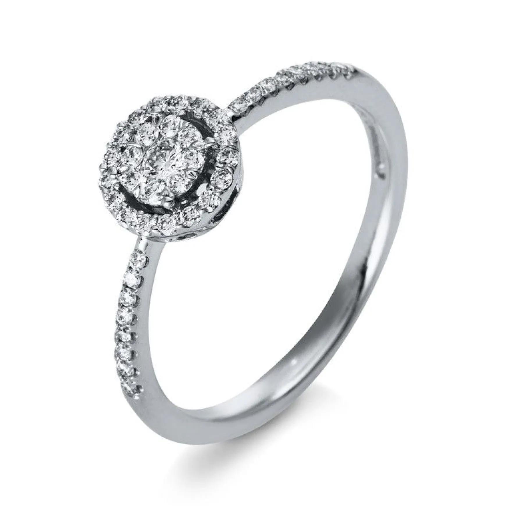 Kein Schmuck glänzt und funkelt so schön wie ein Diamantring. Trauringe, Verlobungsringe, Alltagsringe gesucht? Wie wäre es mit einem verzaubernden Diamantring wie diesen Verlobungsring aus 750/18K Weissgold mit einer Diamant-Steinfarbe: TW (TOP WEssELTON) Feines Weiss. Schmuck hier sichern und als Geschenk für den perfekten Moment bestellen. Allgemeine Produktinformation: Verlobungsring aus 750/18K Weissgold mit 42 Diamant Steinen und 0.25 Karat. Schliffform: Brillantschliff, Steinreinheit: SI