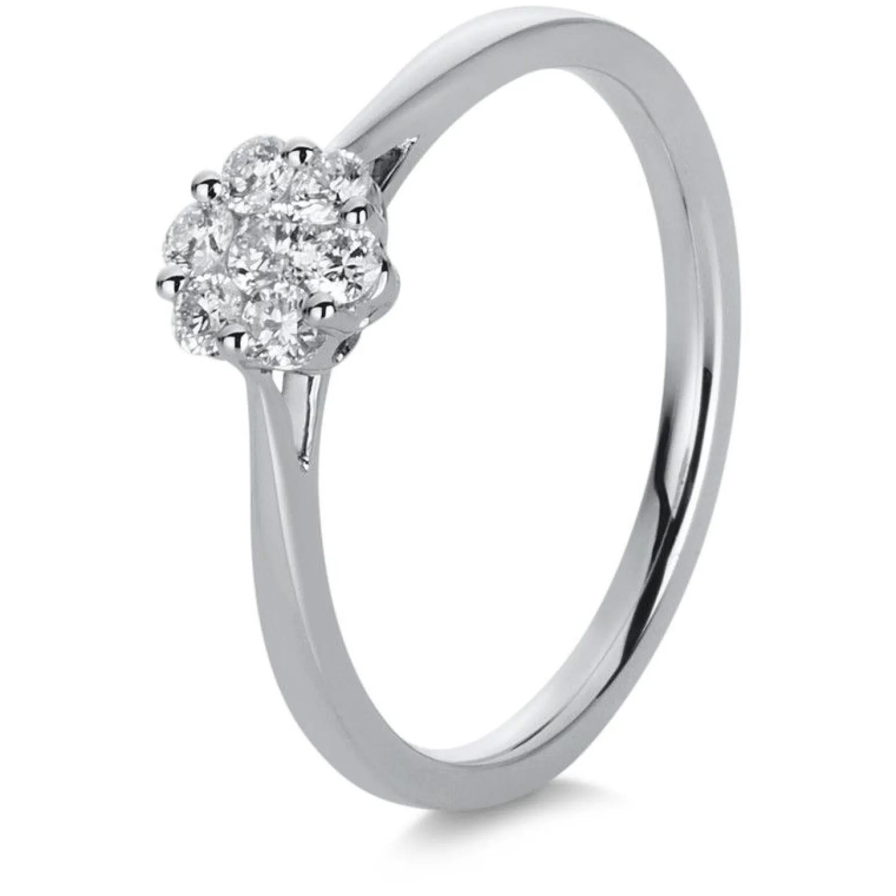 Ein Diamantring schmückt die Hand und hat eine ganz besondere Wirkung. Entdecken Sie jetzt in unserem Schmuck Shop aus unserer Diamantring Kategorien diesen Verlobungsring aus 750/18K Weissgold mit einer Diamant-Steinfarbe: TW (TOP WEssELTON) Feines Weiss. Diamantschmuck einfach im Online Shop bestellen und nach Hause liefern lassen. Allgemeine Produktinformation: Verlobungsring aus 750/18K Weissgold mit 7 Diamant Steinen und 0.27 Karat. Schliffform: Brillantschliff, Steinreinheit: SI