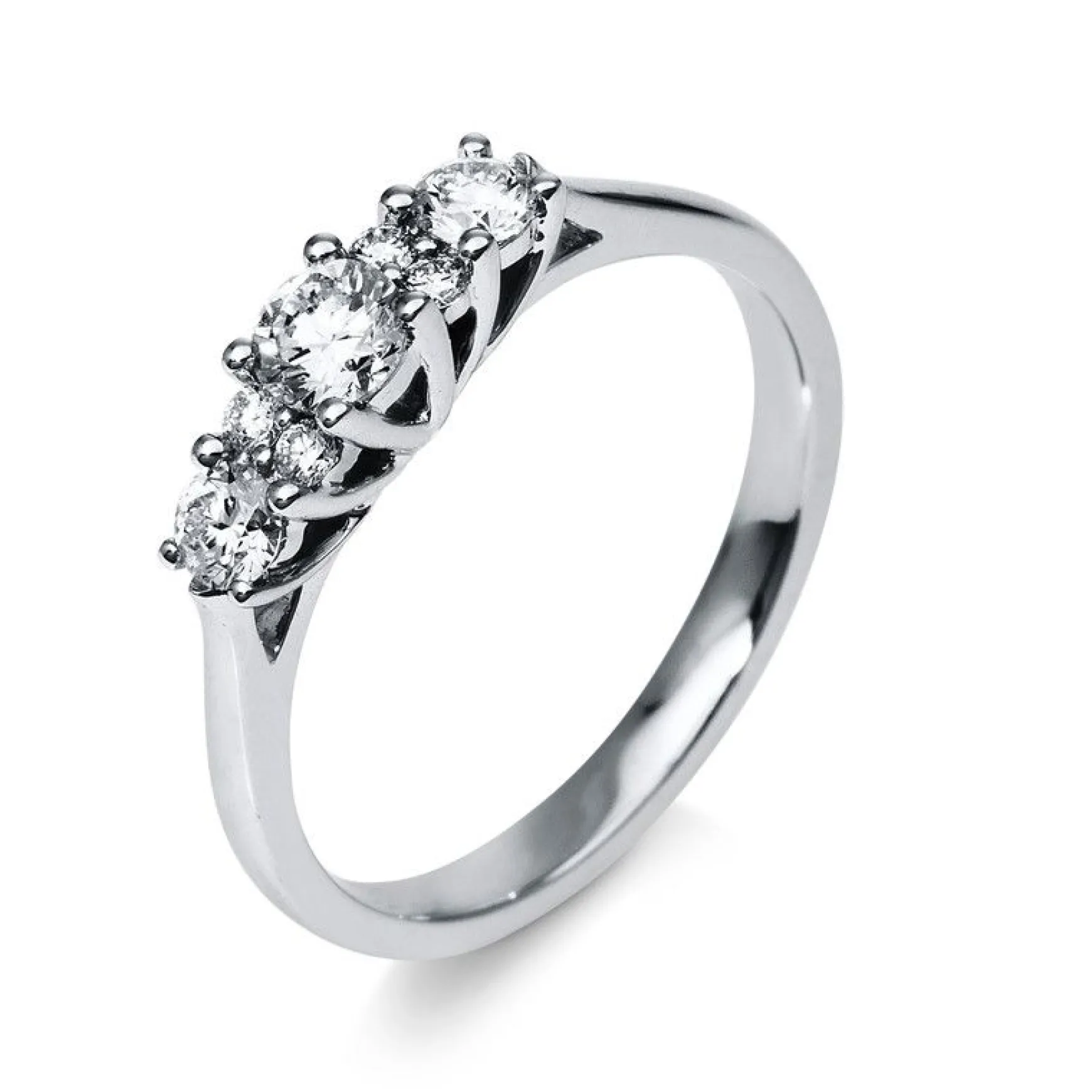 Diamantringe und Diamantschmuck geniessen in vielen Kulturen höchste Wertschätzung. Finden Sie jetzt Ihren Lieblings-Diamantring wie diesen Verlobungsring aus 750/18K Weissgold mit einer Diamant-Steinfarbe: TW (TOP WEssELTON) Feines Weiss. Jetzt den Diamantring ganz einfach und bequem online sichern. Allgemeine Produktinformation: Verlobungsring aus 750/18K Weissgold mit 7 Diamant Steinen und 0.49 Karat. Schliffform: Brillantschliff, Steinreinheit: VSI/SI